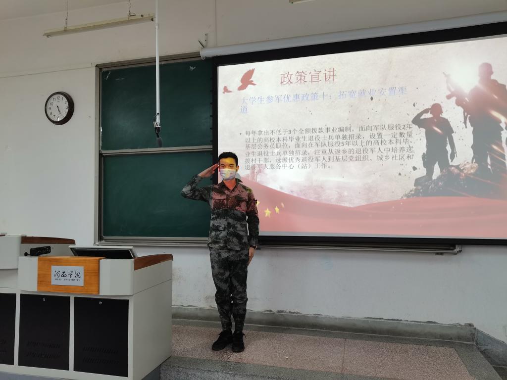 本次征兵动员大会通过观看全国征兵公益宣传片《参军报国 不负韶华》等、分发征兵学习笔记、退役复学乔克楠等4名同学分享自己的入伍经历,现场解答了同学们关心的相关问题和老员工服兵役的政策解读。重点讲解了参军对成长的人生价值,并鼓励现场咨询的员工们踊跃报名参军,报效祖国,实现自己人生梦想。