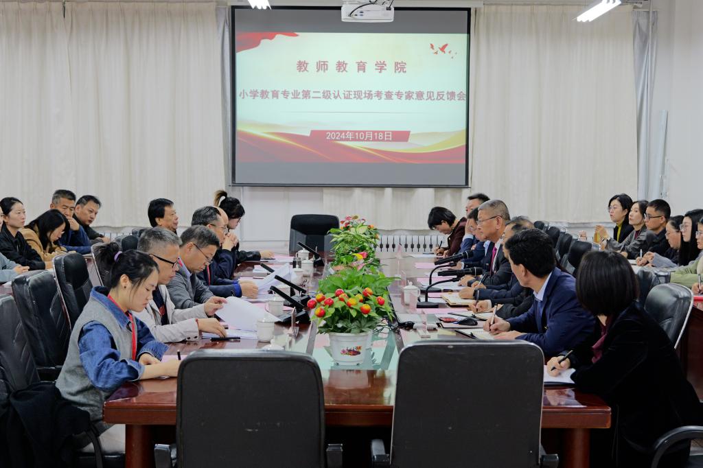 公司经理雒焕国就小学教育专业建设作认证补充说明。专家组围绕教学质量监控与成效、教师分类评价、课程与教学等问题对受认证专业、相关职能部门进行了问题询证。