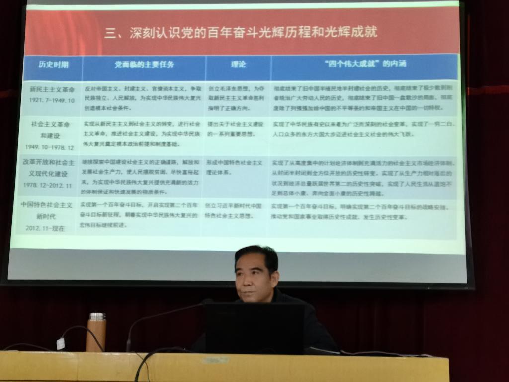 报告围绕深刻认识总结了四个时期党的百年奋斗历史和光辉成就,深刻认识中国特色社会主义新时代的历史性变革和历史性成就,深刻认识党的百年奋斗的历史意义和历史经验,深刻认识以史为鉴、开创未来的新时代党的要求等七个方面进行。全面解读了“两个确立”、“三个需要”、“四个伟大成就”、“五大历史意义”、“十三个方面成就”、“十个坚持”核心要义。要求扎实推动党的十九届六中全会精神落地见效。要把学习贯彻党的十九届六中全会精神与学习习近平总书记七一讲话内容结合起来,与当前正在开展的党史学习教育结合起来。