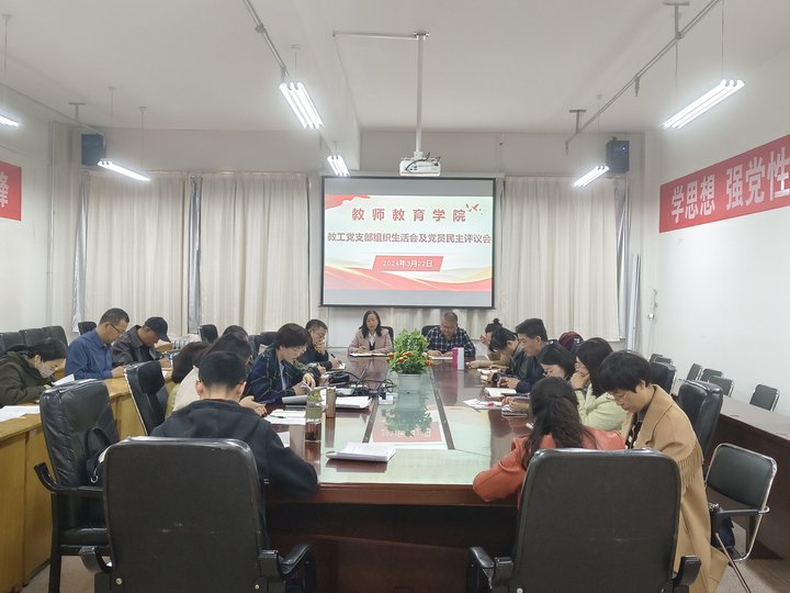 3月22日下午,3377体育召开教工党支部组织生活会及党员民主评议会,会议由教工党支部书记主持,全体在岗党员教职员工和其他非党员教职员工参加了会议。