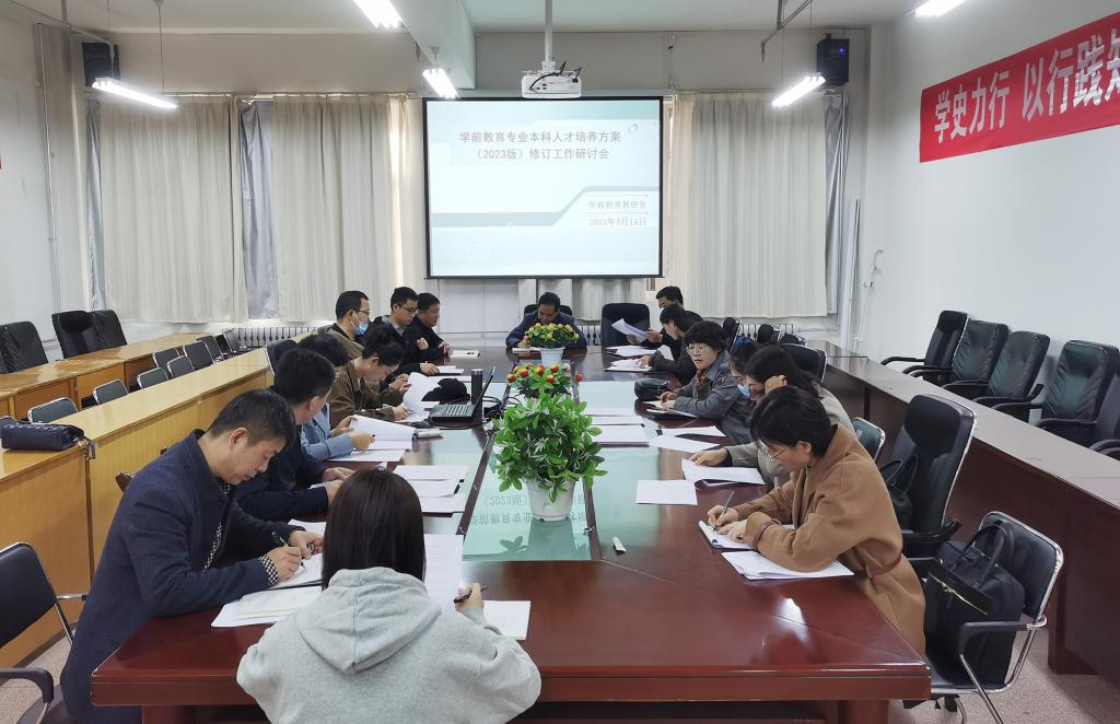 根据教务处下发的《关于做好2023版本科专业人才培养方案修订工作的通知》,3月14日下午,3377体育召开了2023版学前教育专业本科人才培养方案修订会议,公司分管教学工作领导、学前教育和艺术教研室全体教师参加了会议。