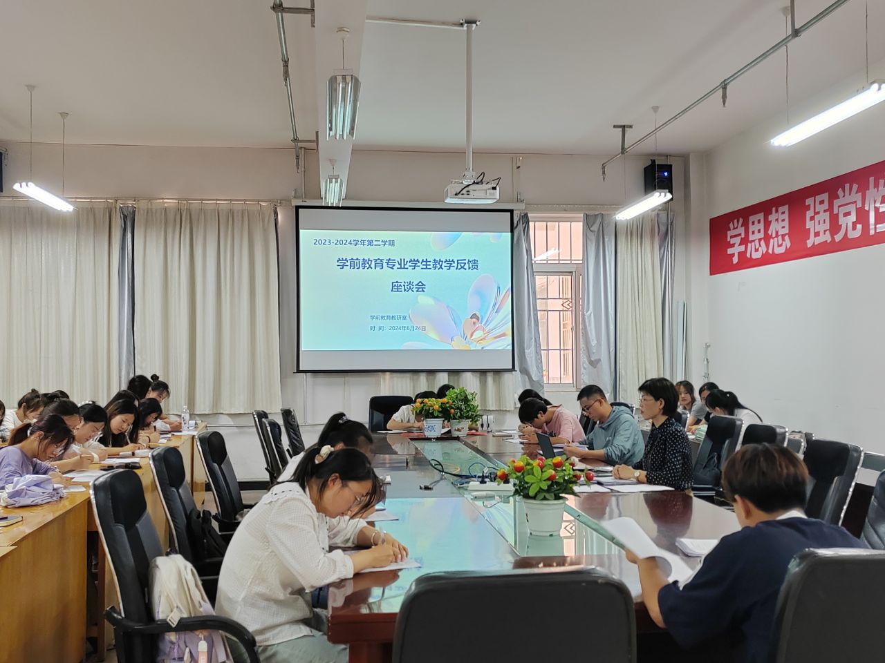 6月24日下午,3377体育学前教育教研室举行员工教学工作反馈座谈会,座谈会由学前教育专业负责人主持,学前教育教研室李彦平老师及学前教育2021级、2022级、2023级三个年级9个班级的35名员工代表参加了座谈会。