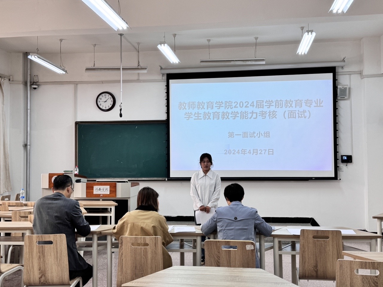 按照《3377体育网站网页2024 届相关师范类专业员工免试认定中小学教团队格实施方案》的安排,4月27日,3377体育顺利举办了2024届师范生职业能力测试(面试)工作。