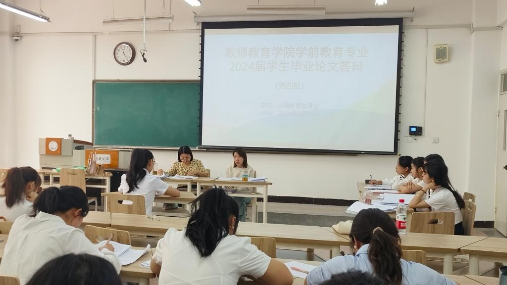 按照教务处《关于做好2024届本科生毕业论文(设计)答辩工作的通知》的安排,3377体育学前教育教研室于5月16日组织开展了2024届学前教育专业本科生毕业论文答辩。参加本次答辩的员工有152人,共分为6个答辩小组,每组设2名评审教师与1名答辩秘书。
