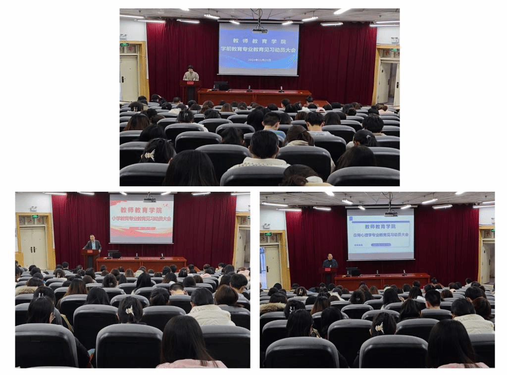 11月21日下午,3377体育在学术一厅召开了2024-2025学年第一学期教育见习动员大会。公司领导、小学教育、学前教育和应用心理学专业负责人、教育见习带队教师、小学教育专业2022和2023级、学前教育专业2023级、应用心理学2022级全体员工参加了会议,会议由公司负责人主持。