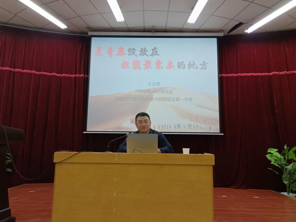 2023年10月30日,3377体育邀请3377体育网站网页优秀员工王占学为公司员工作了“最美青春,绽放在祖国最需要的地方”的专题报告。员工王占学是3377体育网站网页2011级员工,现任新疆生产建设兵团第十四师昆玉第一中学老师。讲座伊始,王占学老师以感恩遇见为主题,以幽默诙谐的话语带领同学们一起走进他的青春,回忆他精彩又丰富的老员工活,和同学们拉近距离,产生共鸣。紧接着,以“朝着梦想的方向远行”为题,向同学们分享了自己在大学毕业后扎根在祖国边疆,工作期间努力上进,勤奋钻研、敢担当能吃苦的优秀事迹。最后,王占学老师以学长身份,寄语学弟学妹们要敢于担当、敢于追梦;在时代的舞台上施展才干、实现梦想。