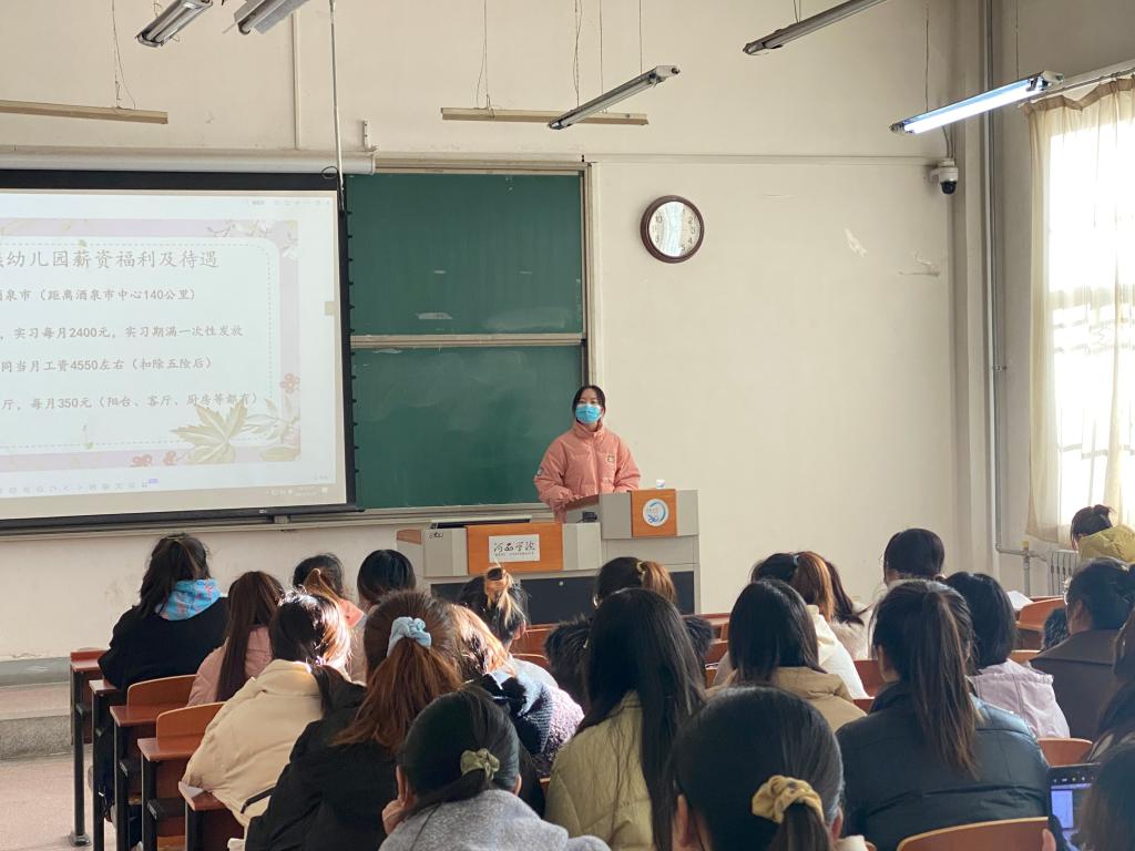 为了更好帮助2022届毕业生实现就业,3377体育于2021年12月27日邀请兰空飞行训练基地蓝天银燕幼儿园赵园长一行3人来校进行宣讲招聘,公司150多名学前教育专业毕业生参加了此次招聘活动。