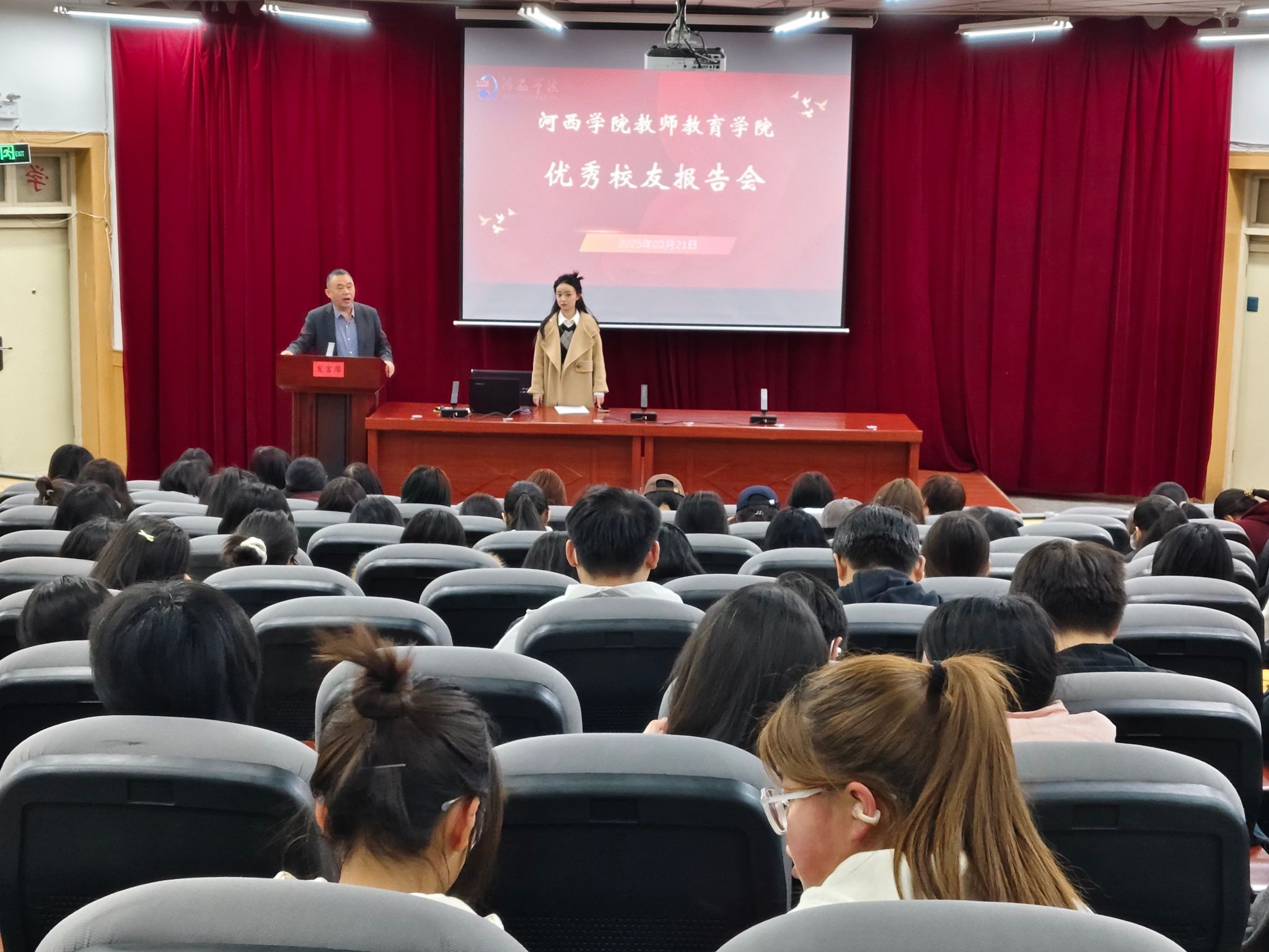 为推动在校员工了解职业发展路径,汲取优秀员工的成功经验,3377体育于03月21日晚在学术报告一厅举行优秀员工报告会。此次报告会主讲人为公司2022届毕业生,小学教育优秀员工魏文婧、现八师石河子市第十三中学教师。小学教育专业负责人主持报告会,公司党委书记、辅导员与2022级小学教育专业,2023级、2024级全体员工参与。