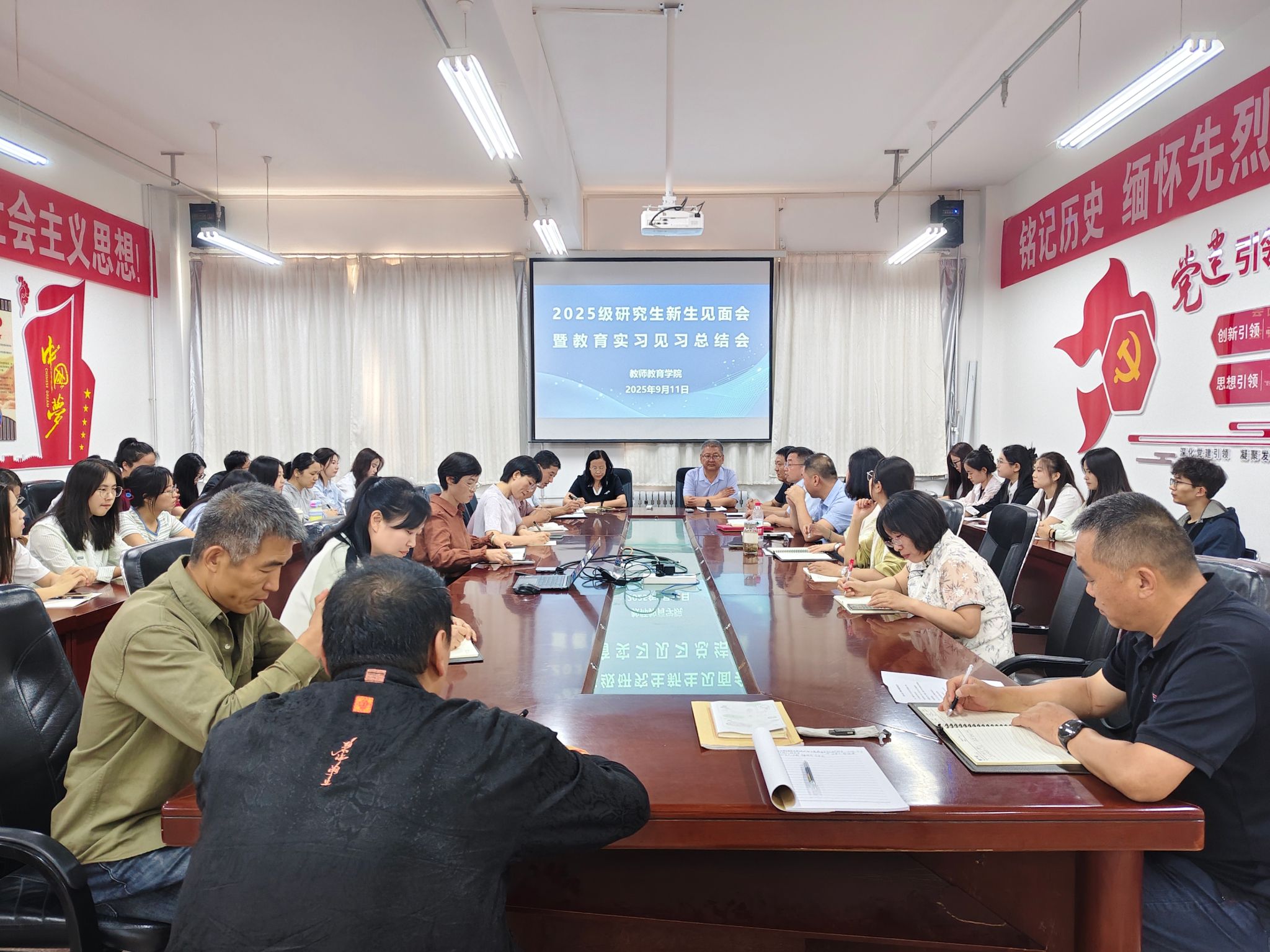 9月11日,3377体育召开2025级研究生新生见面会暨教育实习见习总结会。会议由公司负责人主持,全体研究生校内导师、班主任及2023级、2024级、2025级研究生参会。